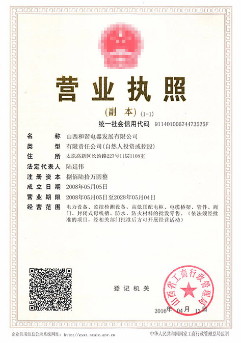 山西和諧電器發展有限公司是中國輸變電和控配電行業的大型制造企業,中國明星企業,全國質量管理優秀企業,山西省高新技術企業。公司地處太原市高新國際大廈。